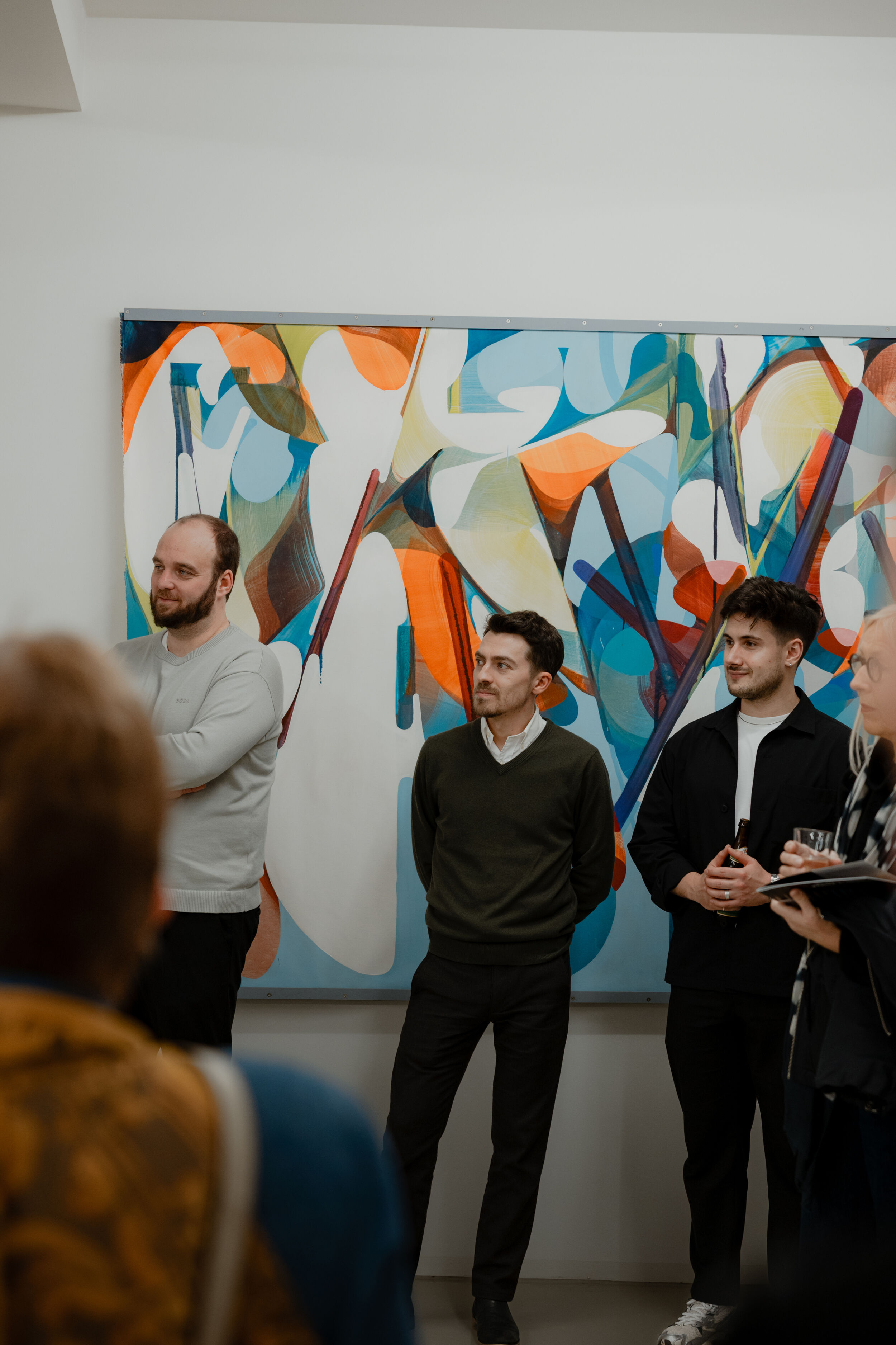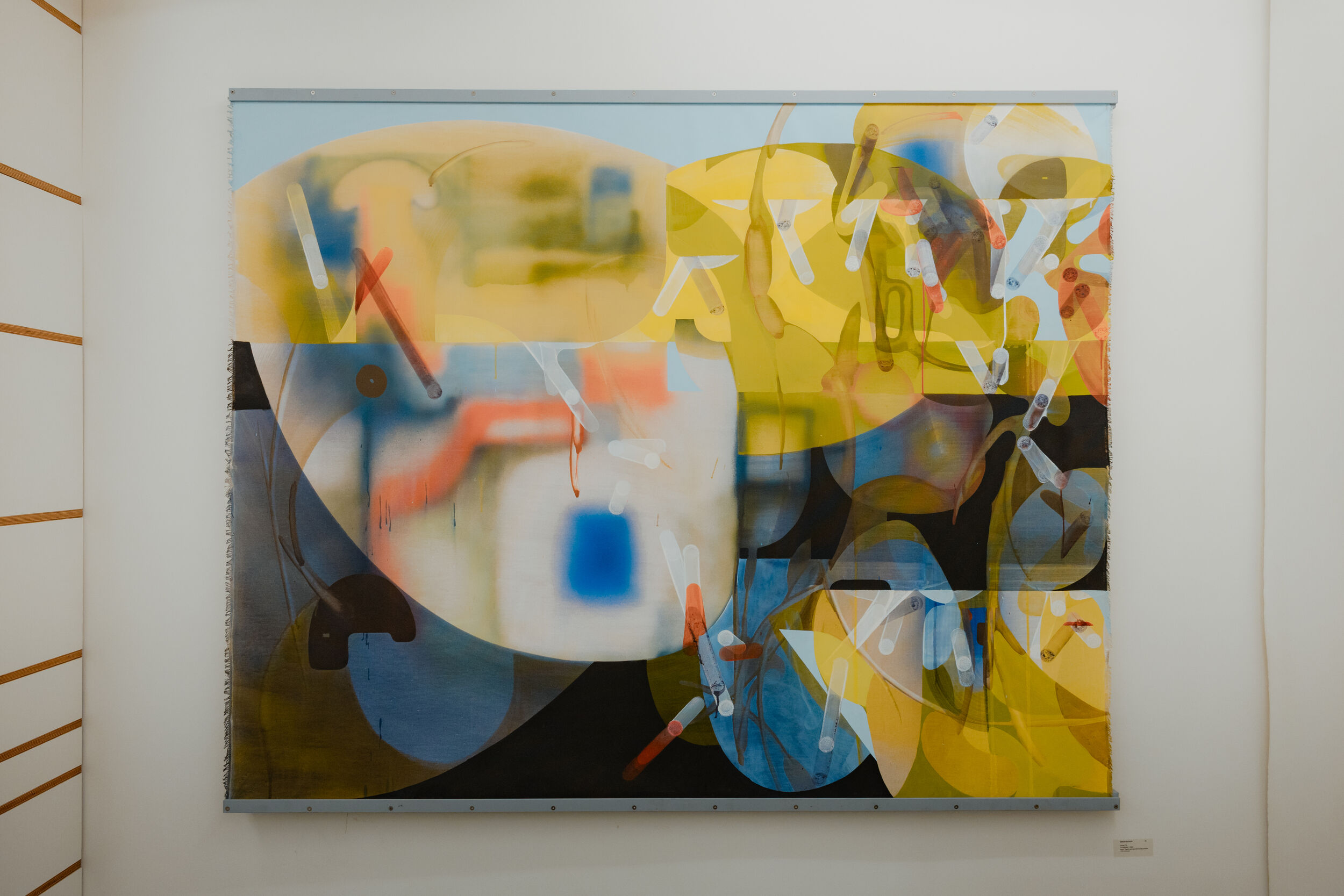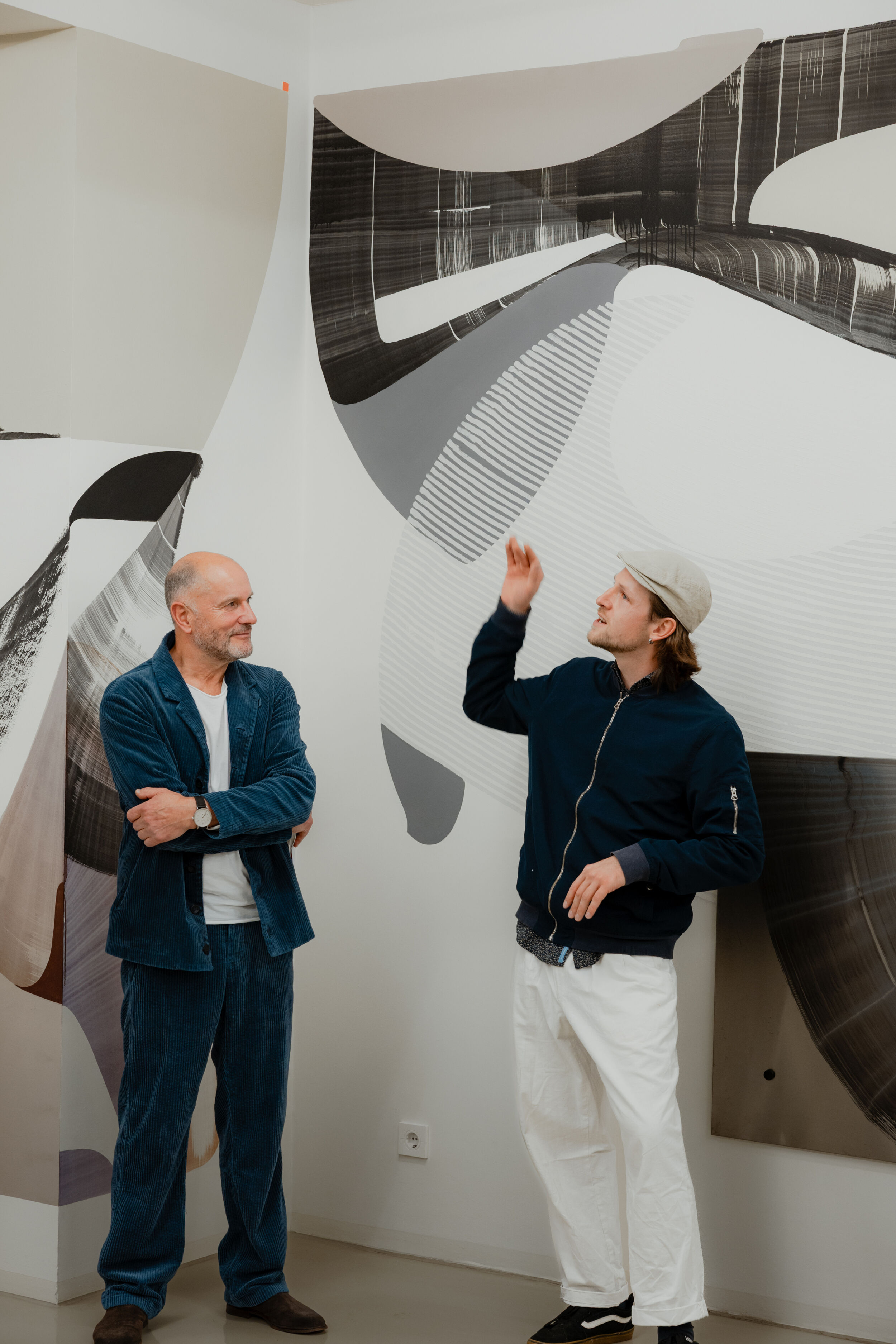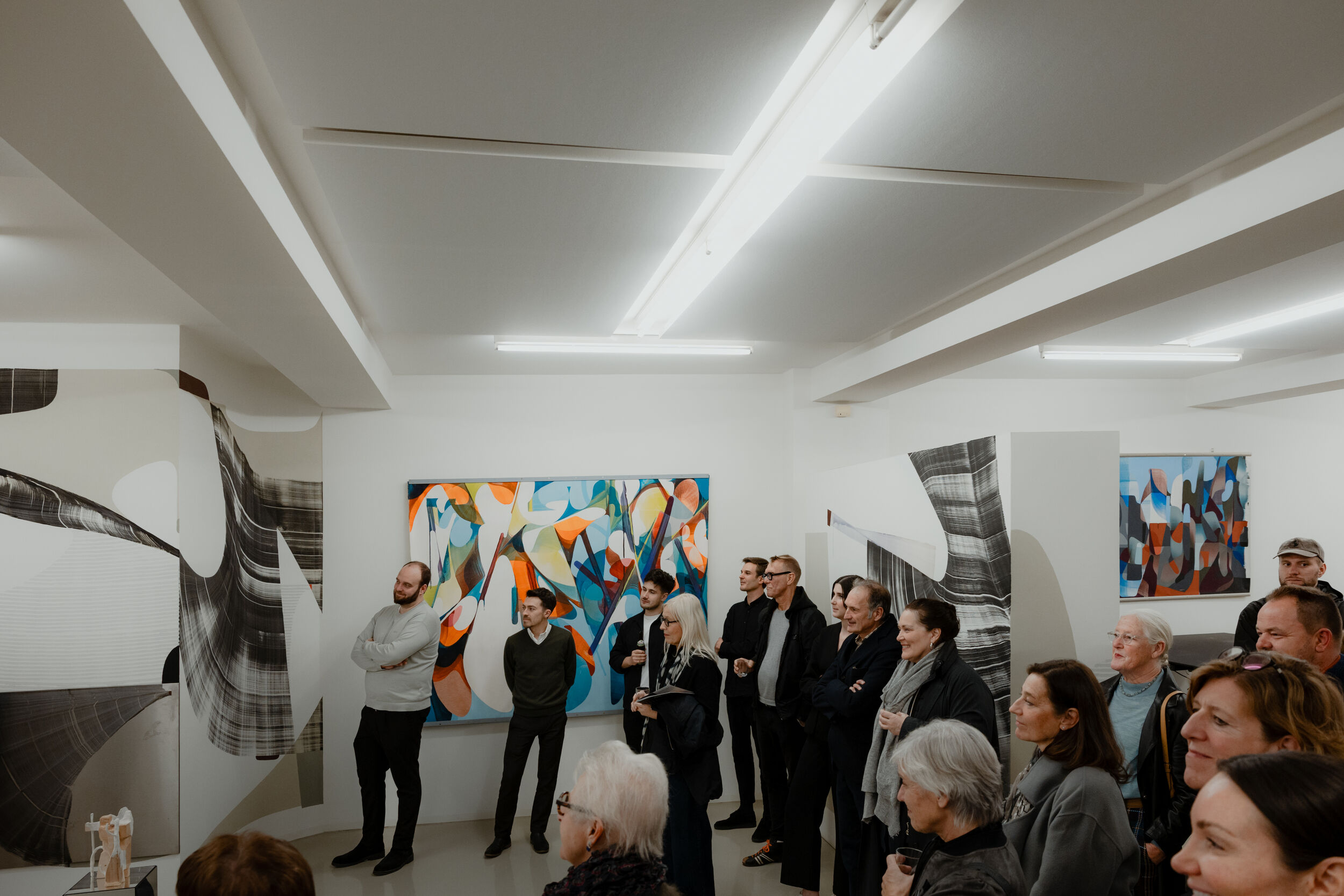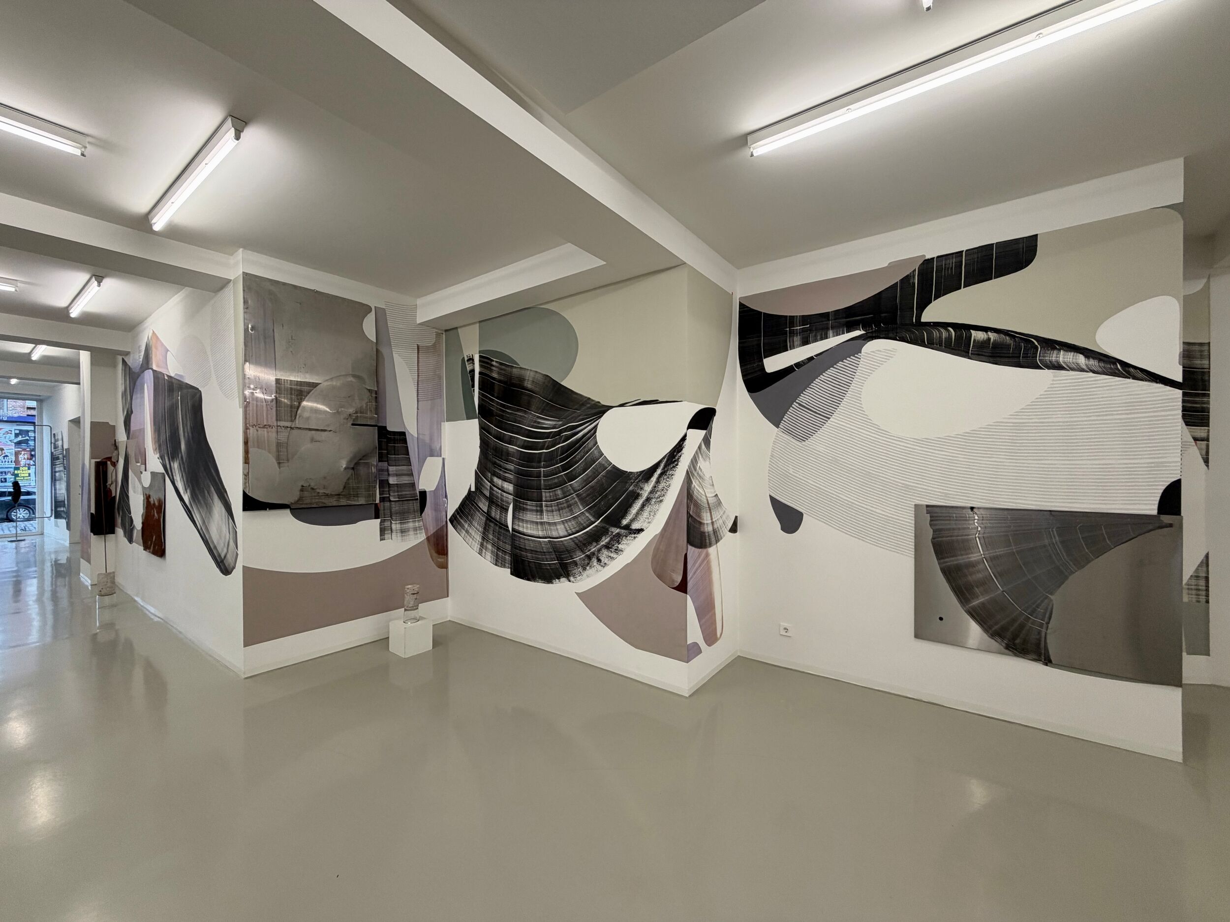 Im Verlauf dieses Prozesses arbeitete er direkt im Galerieraum, entwickelte ortsspezifische Interventionen und schuf neue Arbeiten, die im Dialog mit der Architektur entstanden. Wände wurden Schichtträger, Strukturen wurden geöffnet, Raum und Form verschoben sich durch Installationen, großformatige Arbeiten und grafische Elemente. Sein Arbeitsprozess blieb dabei bewusst offen: Entstehen, Verdichten, Überlagern und Neuordnen prägten die kontinuierliche Entwicklung des Projekts.